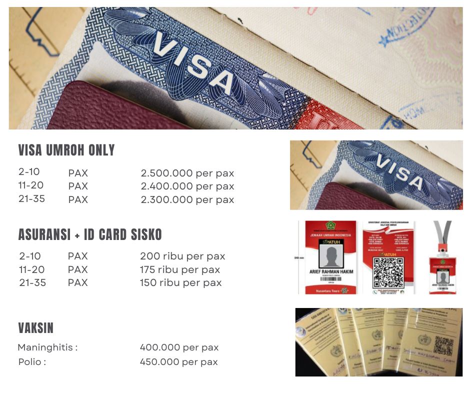 Kalau udah Punya tiket pesawat & Hotel selanjutnya kamu bisa pesan Komponen Umroh sama kami di nuzultrip seperti : Visa umroh, Transportasi, Handling airport, dan jasa mutawif