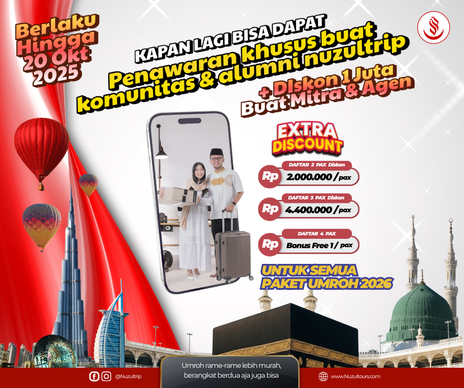 Nuzultrip lagi ada program diskon terbatas khusus buat para komunitas dan alumni jamaah nuzultrip