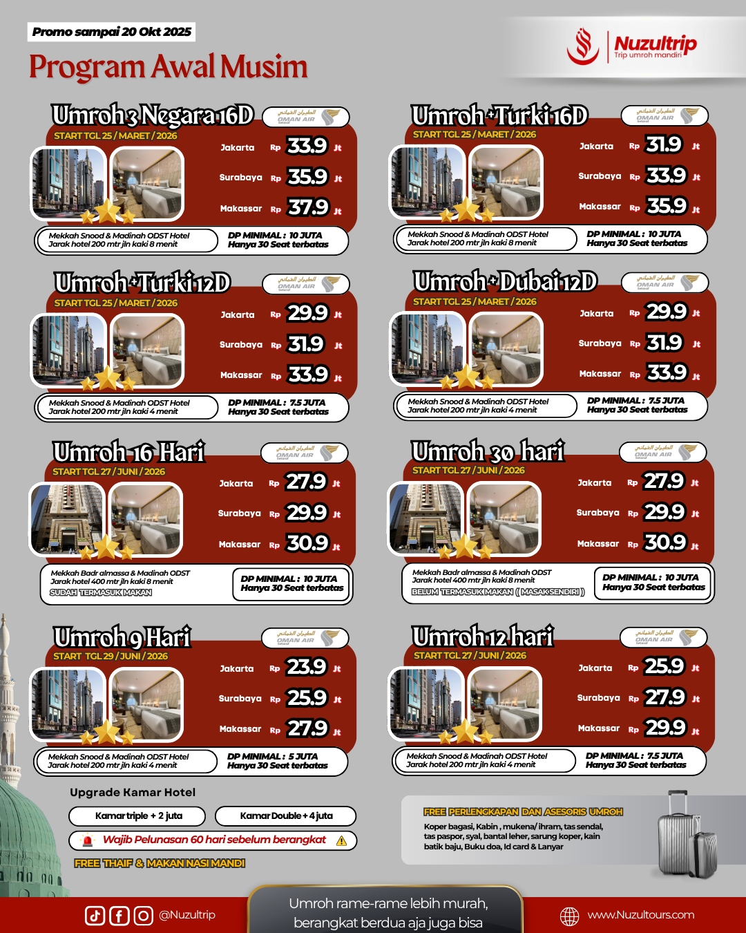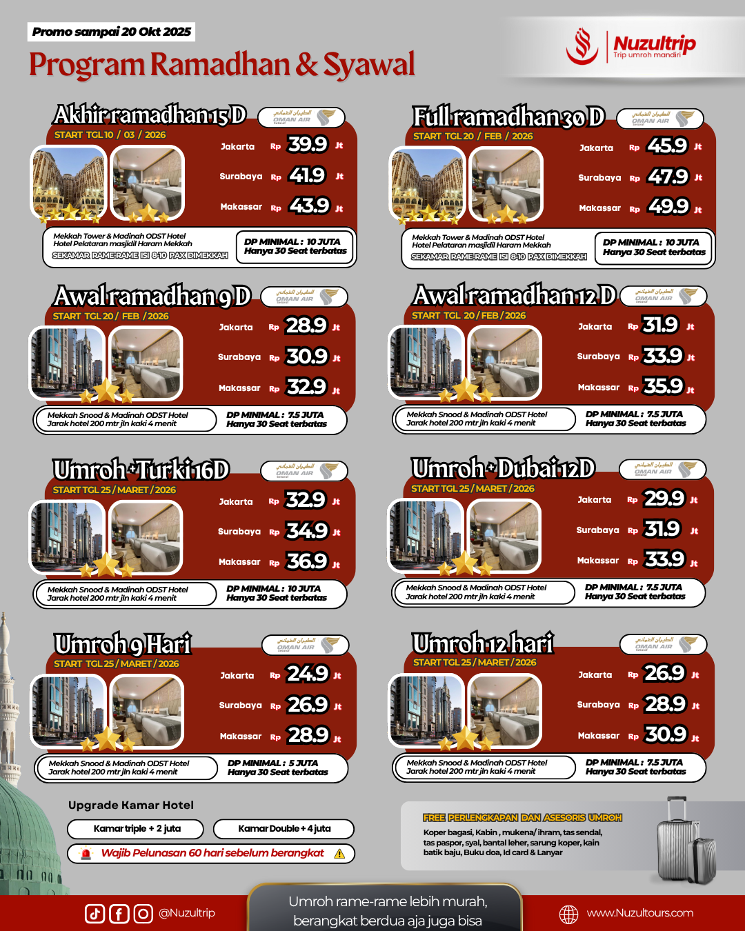 Dengan paket dari Nuzul Trip harga bersahabat dan pastinya umrohmu bakalan aman dan menyenangkan