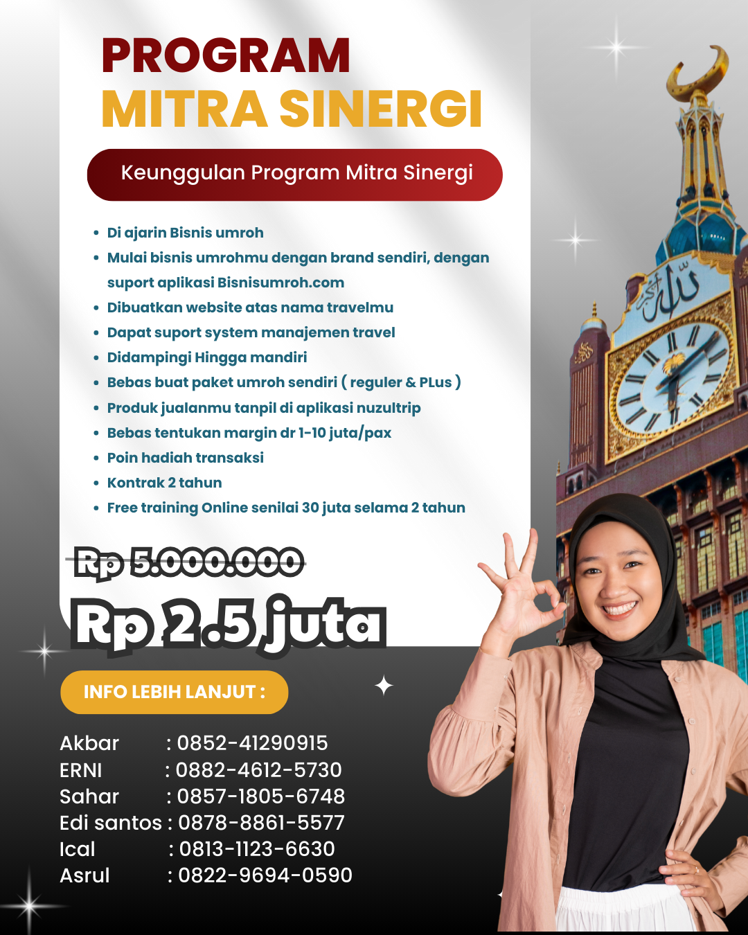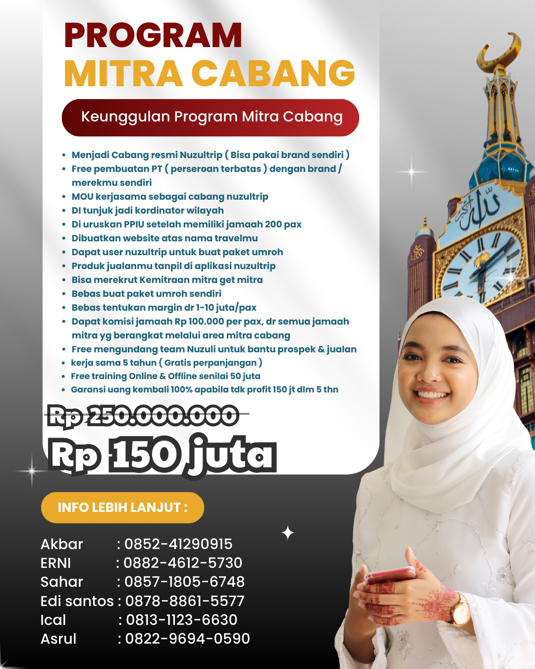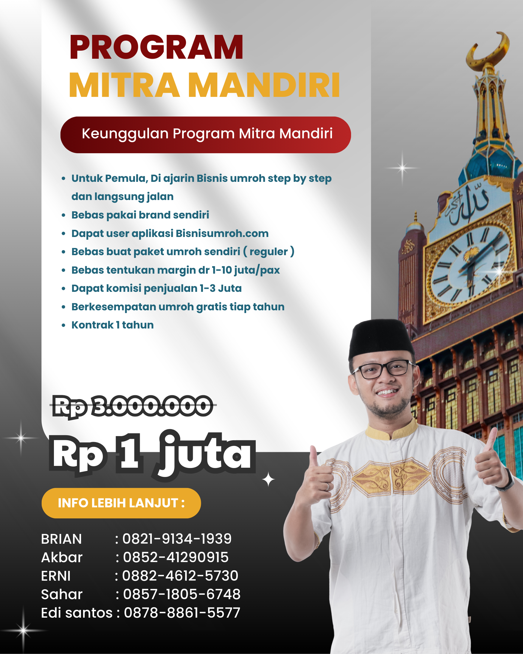 Mula-mula umroh mandiri, lama-lama punya travel umroh sendiri & dapatkan diskon khusus 50% di acara seminar untuk ikutan bisnis umroh bersama nuzuliMula-mula umroh mandiri, lama-lama punya travel umroh sendiri