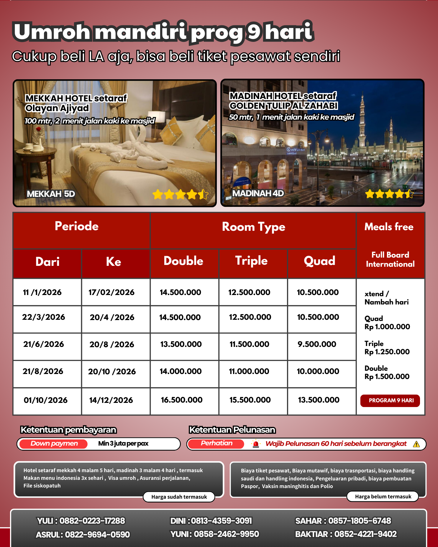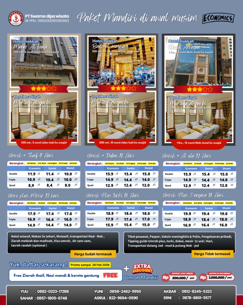 Bagi yang ingin membuat trip umrohmu sendiri,