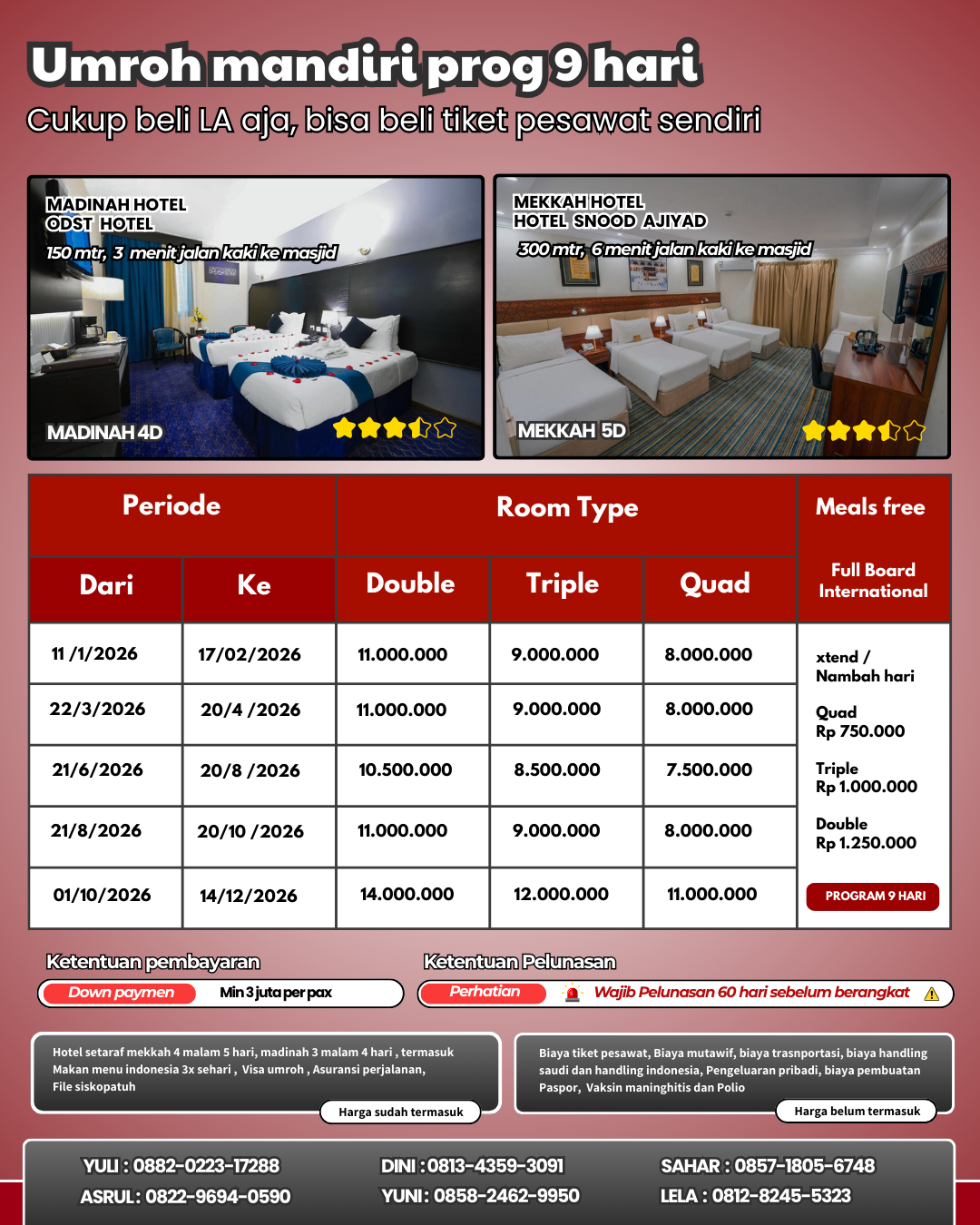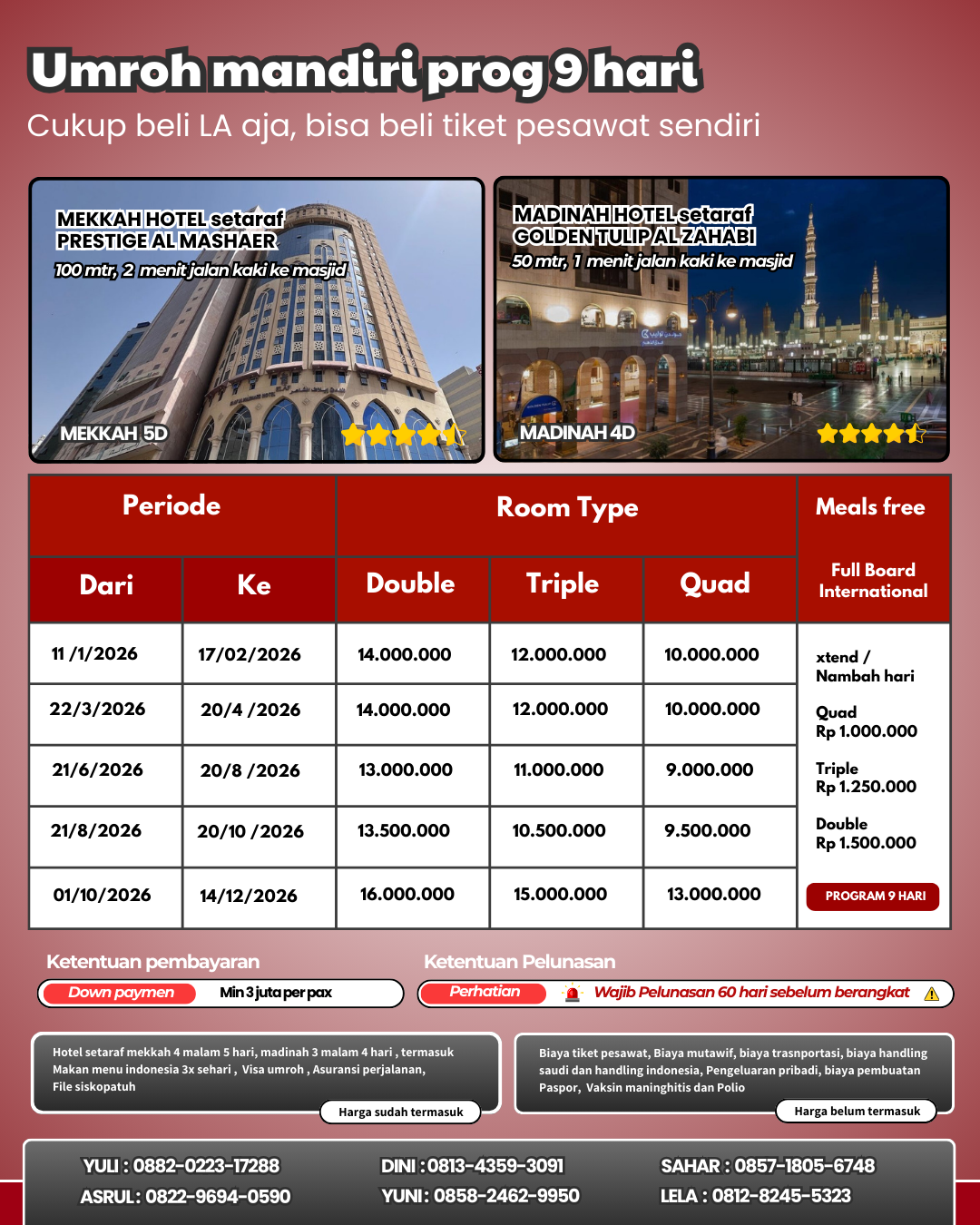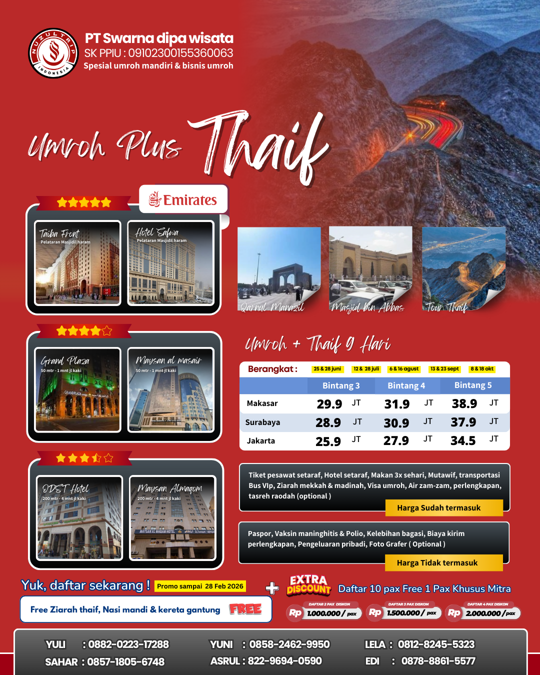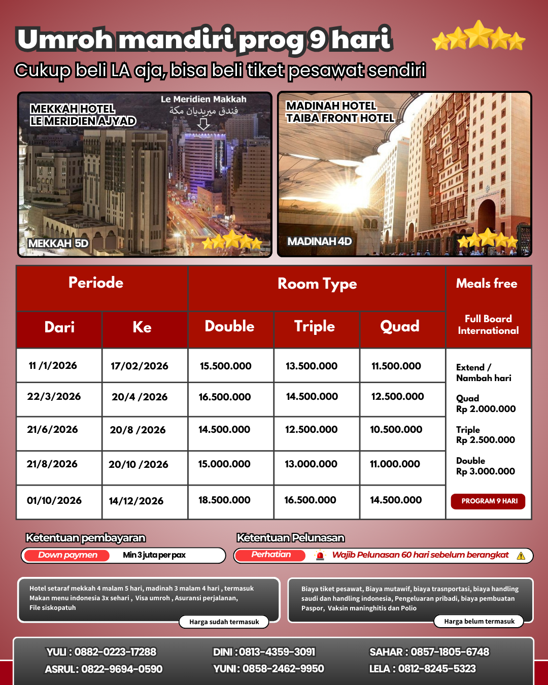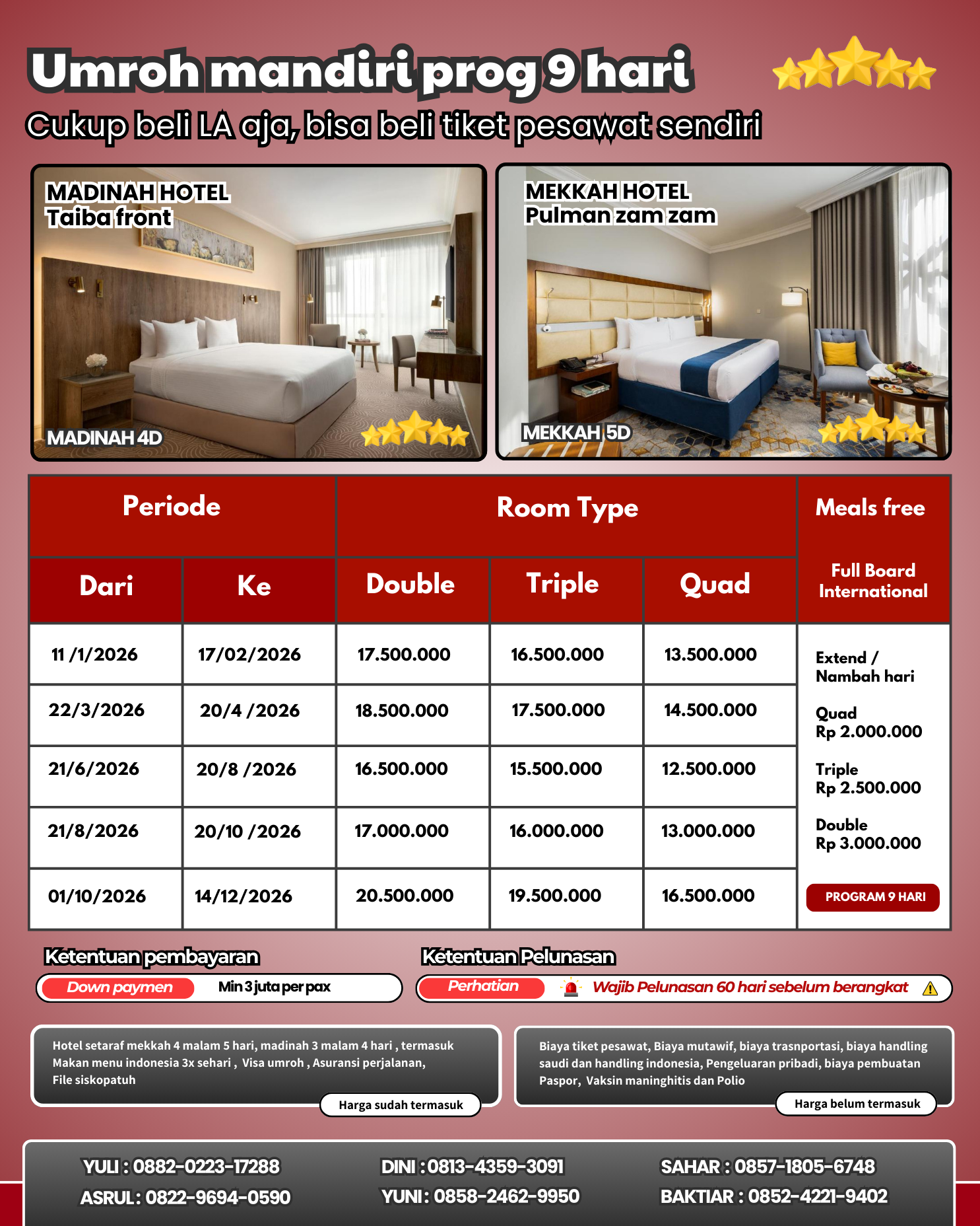 ibadah umrah di tanah suci (Muthowif) hingga pengantaran kepulangan jamaah