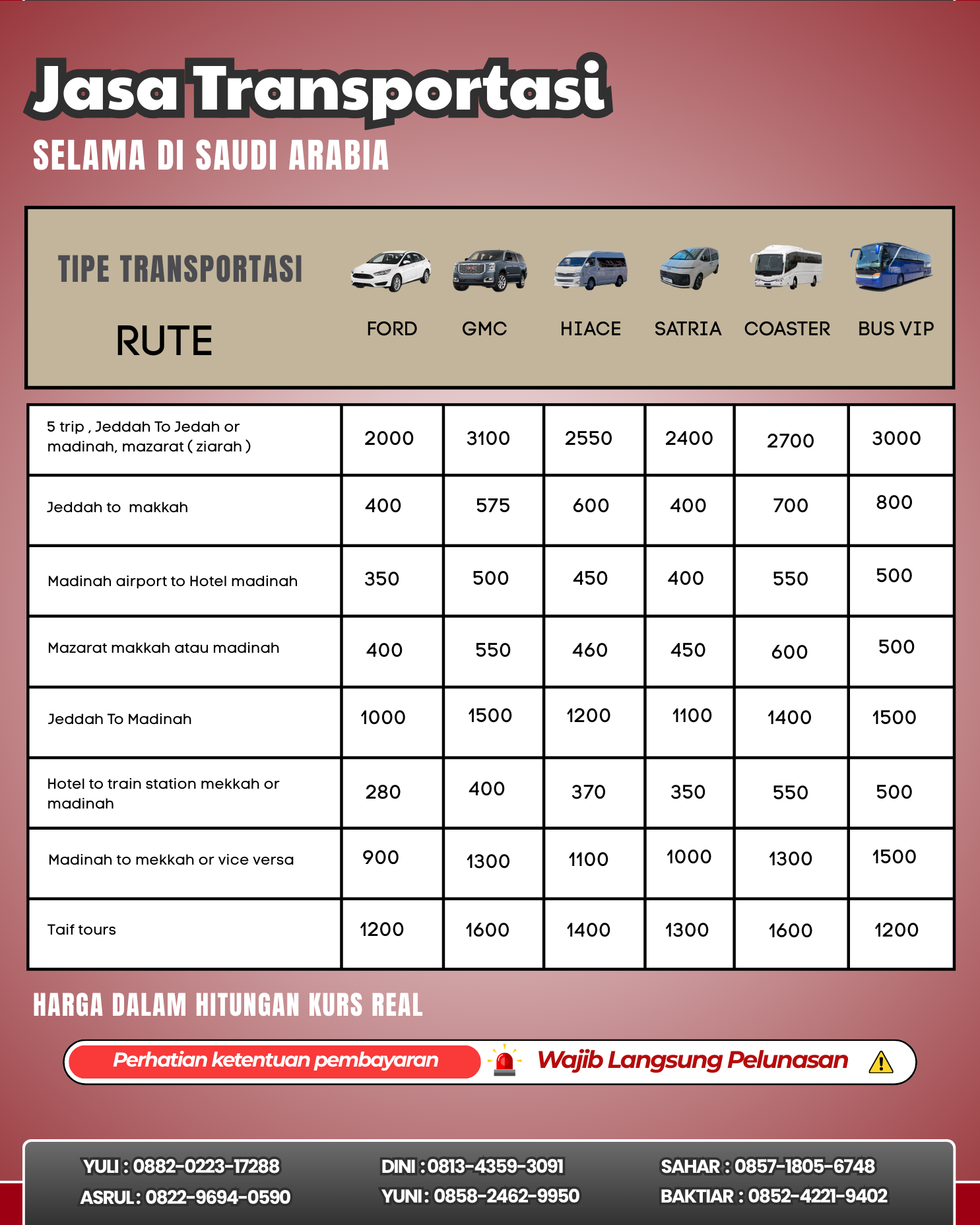 Transportasi selama di saudi nggak perlu lagi mikir untuk cari taxi dan bus dari datang, ziarah sampai kepulangan