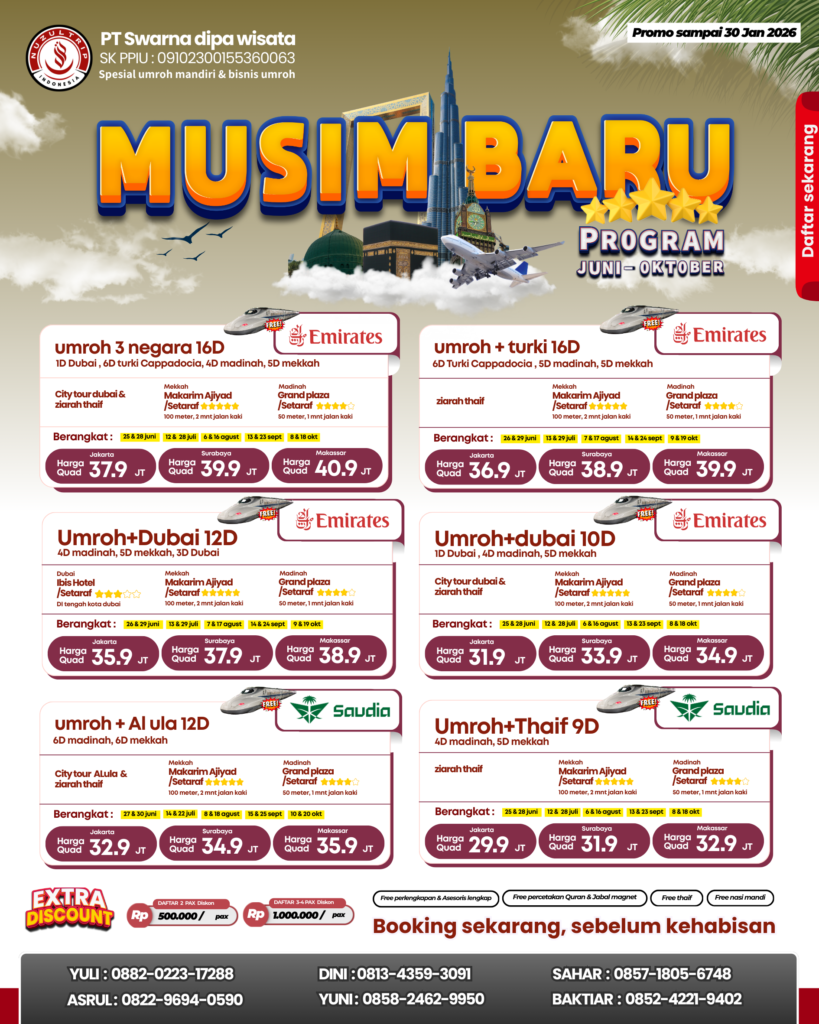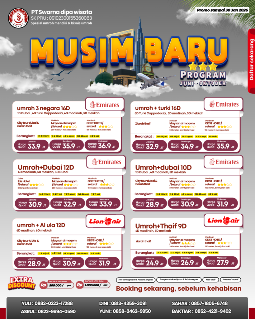 * Promo Diskon sewaktu-waktu berakhir apabil seat habis / terpenuhi….buruan daftar segera !!