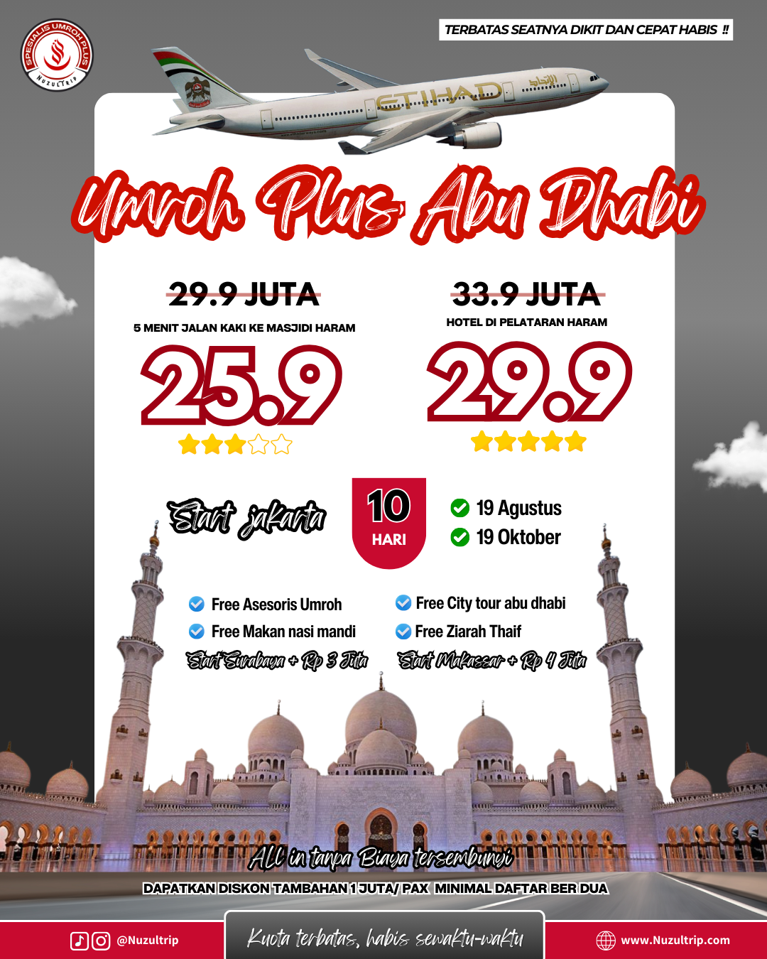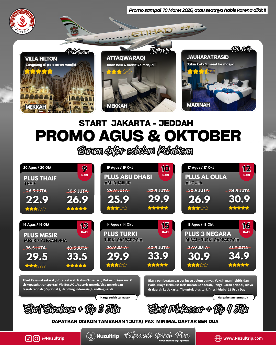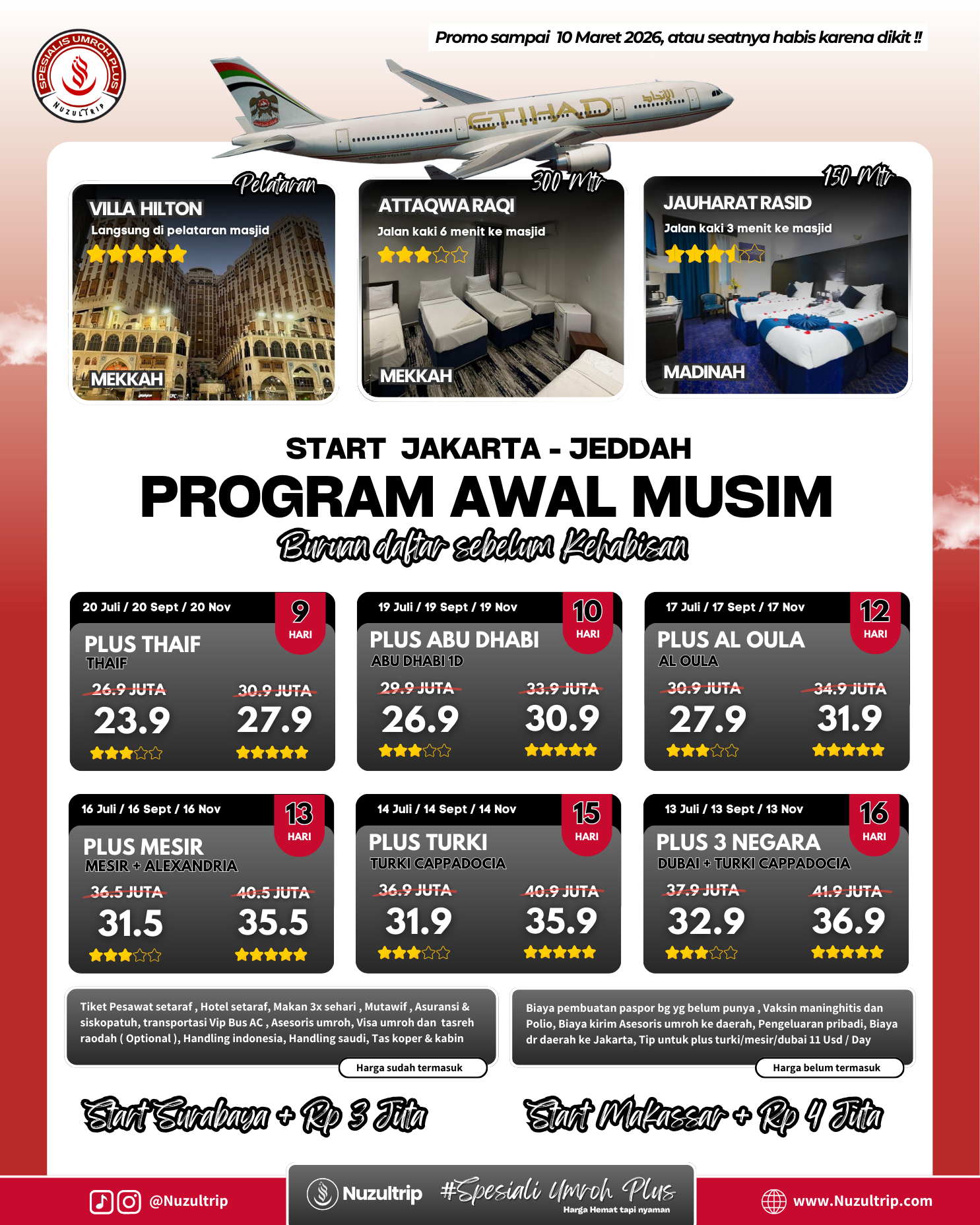 Daftar umroh di Nuzultrip hari ini, nikmati benefit lebih untuk perjalanan berikutnya.