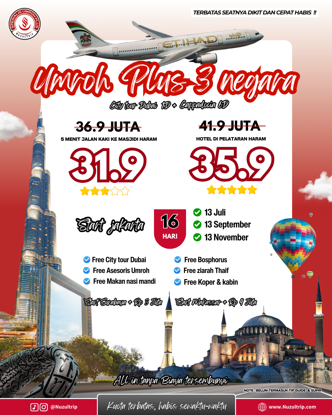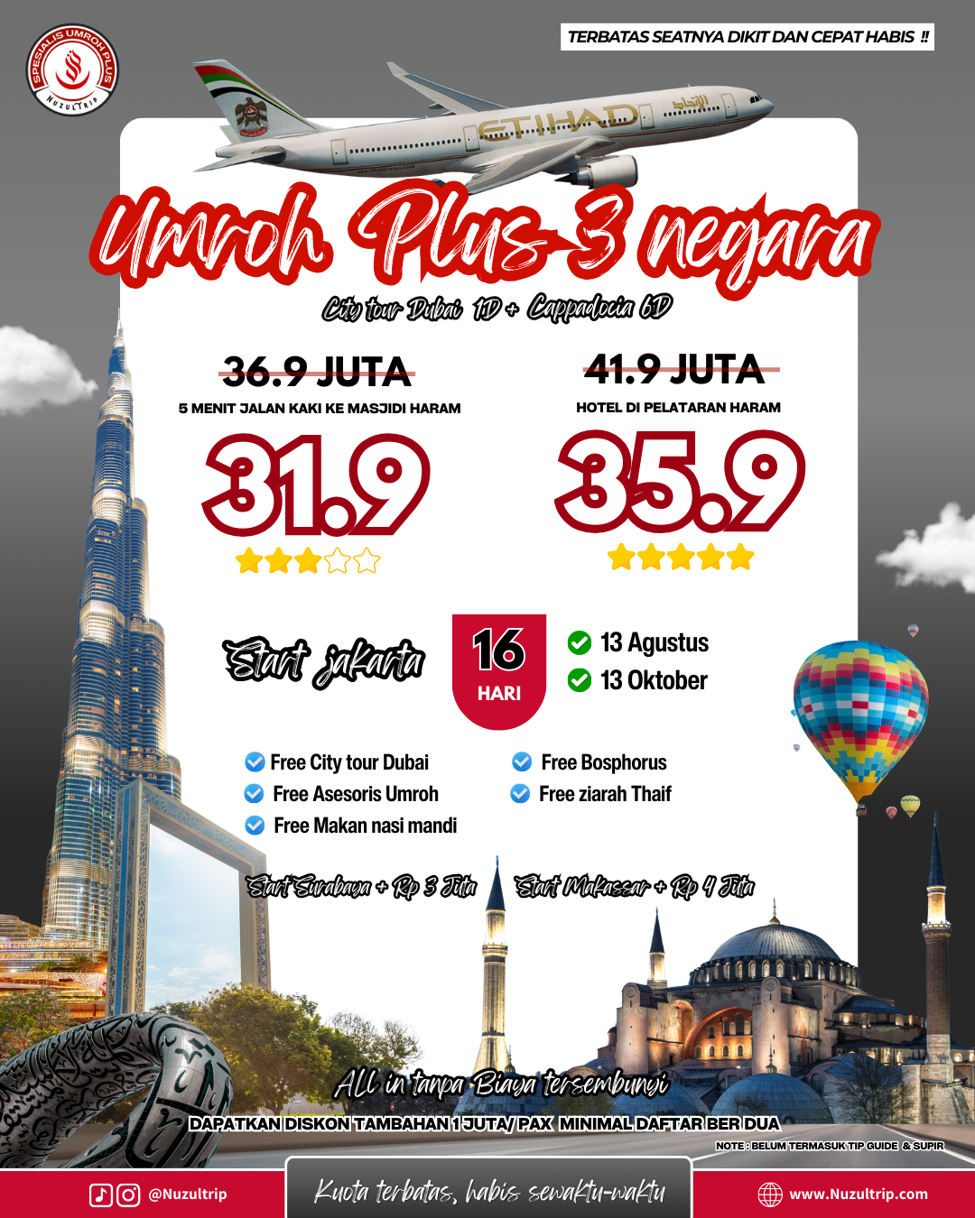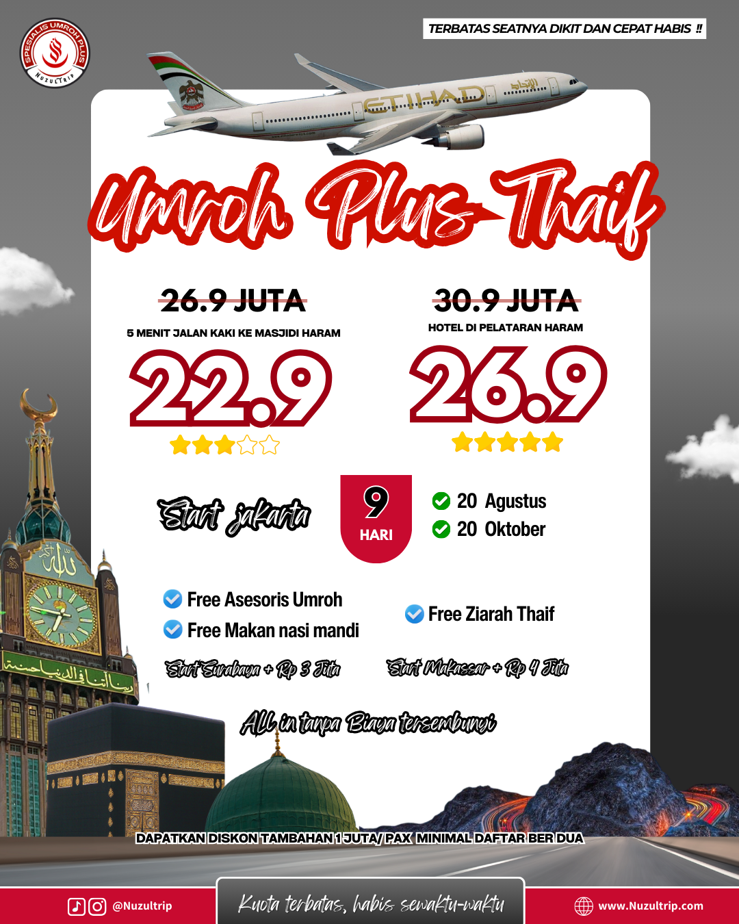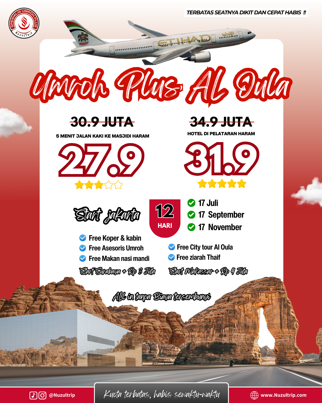 Daftar umroh di Nuzultrip hari ini, nikmati benefit lebih untuk perjalanan berikutnya.