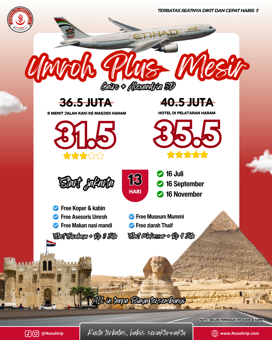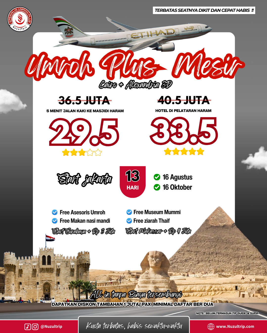 🎁 Setiap jamaah mendapatkan Voucher Diskon Rp5.000.000 per pax 📌 Berlaku untuk pendaftaran umroh selanjutnya Ibadah nyaman sekarang, keuntungan menanti di keberangkatan berikutnya 🤍Nuzul Trip adalah sebuah komunitas yang hadir untuk membantu kamu yang masih bingung gimana cara untuk umroh mandiri dengan legal, aman dan terpercaya.!!!